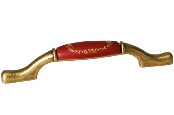 Ручка-скоба KITM172122D1GA, материал Замак Керамика, цвет Красный, отделка Бронза Керамика, 140x18x29 мм